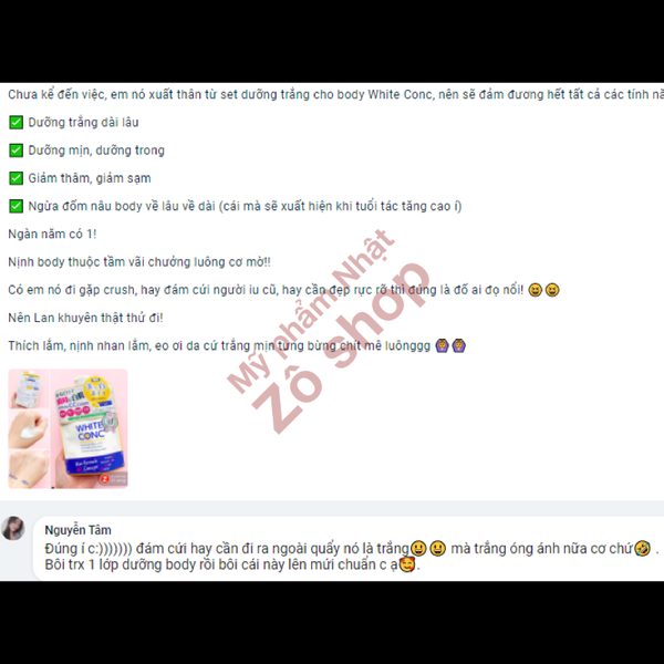 Da mình không đều màu nên mỗi lần mặc áo hở lưng hay hở cánh tay hoặc hở chân mình đều rất tự ti vì da đen quá. Sau khi được chị Lan giới thiệu em này thì mình như tìm thấy cứu tinh đời mình. Mình tự tin hơn vì bạn này lên tông ngay khi thoa nên da mình đều màu hơn, cũng tự tin hơn