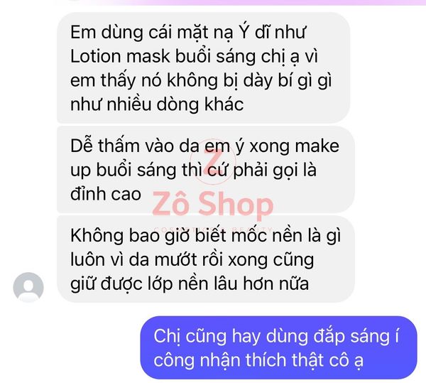 - Tôi mua dòng này như lotion mask dùng sáng, vì kết cấu mặt nạ mỏng, dễ hấp thụ vào da tôi, rất hoàn hảo cho mùa hè (with★★ - 29 tuổi, da hỗn hợp)