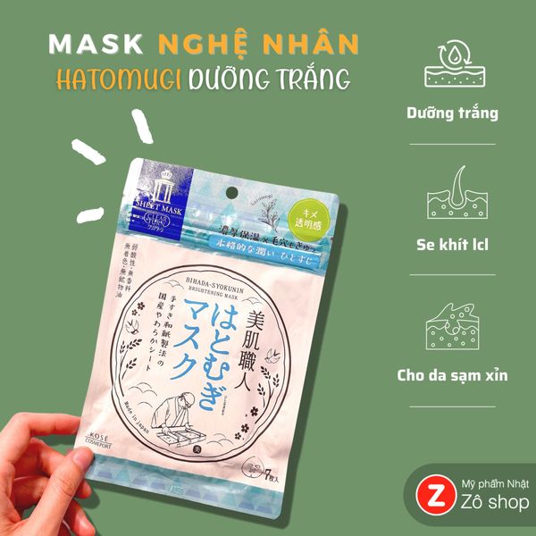 - Giá mặt nạ nghệ nhân Hatomugi dưỡng trắng, se khít lỗ chân lông - Kose Clear Turn Beautiful Skin Craftsman Hatomugi 7 miếng