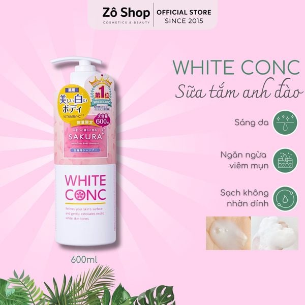 - Giá sữa tắm dưỡng trắng, loại bỏ da chết White ConC Body CⅡ hương Sakura 600ml